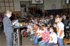 Gäste aus dem Ministerium, dem Stadtschulrat, beider Pädagogischer Hochschulen, dem Bundesverband für Österreichische Montessori Pädagogik, dem Bezirk, dem Elternverein, Sponsoren, Lehrerinnen und Lehrer und mehr als 350 Kinder verfolgten mit Spannung den Versuch von Diplombiologin Bauer bei der Eröffnung.
